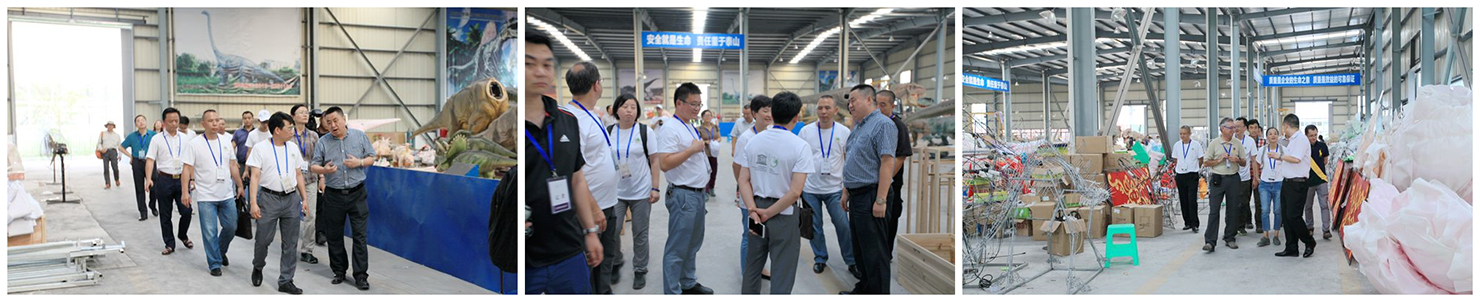在自貢燈貿(mào)集團執(zhí)行總裁陶建軍,集團下屬國韻燈貿(mào)有限公司總經(jīng)理李斌的陪同下,各位領(lǐng)導參觀了燈貿(mào)集團的各生產(chǎn)現(xiàn)場,認真聽取公司情況介紹,對我公司的研發(fā)創(chuàng)新能力、產(chǎn)品升級能力、市場開發(fā)能力等給予了充分的肯定和高度的評價。兩位教授對公司的燈和恐龍十分感興趣,對彩燈的“結(jié)、扎、編”工藝贊不絕口。