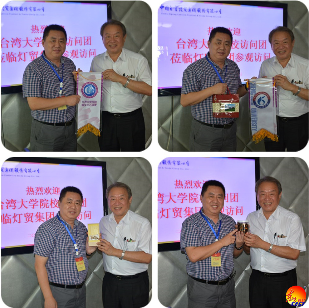 8月5日下午,臺(tái)灣地區(qū)大學(xué)院校藝文中心協(xié)會(huì)訪問(wèn)團(tuán)一行24人在文化部港澳臺(tái)辦公室臺(tái)灣處處長(zhǎng)何婕、省文化廳外聯(lián)處處長(zhǎng)任丘、市文廣新局副局長(zhǎng)江波等領(lǐng)導(dǎo)的陪同下,走進(jìn)燈貿(mào)集團(tuán),近距離感受彩燈文化。燈貿(mào)集團(tuán)公司執(zhí)行總裁陶建軍、集團(tuán)公司旗下國(guó)韻燈貿(mào)公司總經(jīng)理李斌參加了此次交流座談。