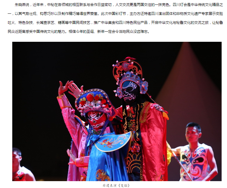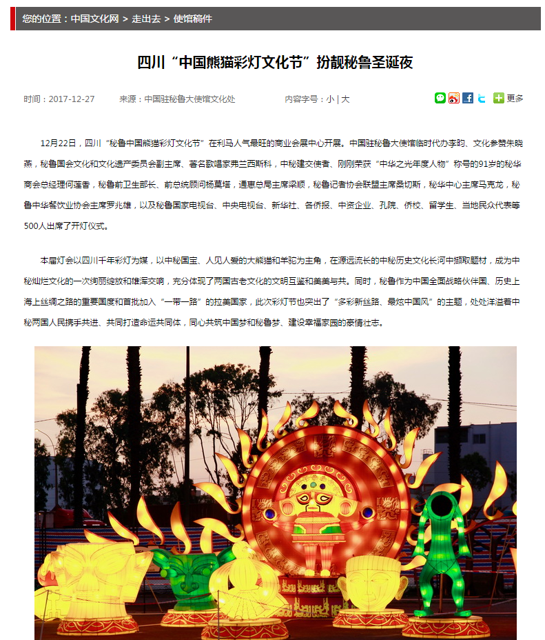 國(guó)家文化部官網(wǎng)專題報(bào)道:東方彩燈∣四川“中國(guó)熊貓彩燈文化節(jié)”扮靚秘魯圣誕夜