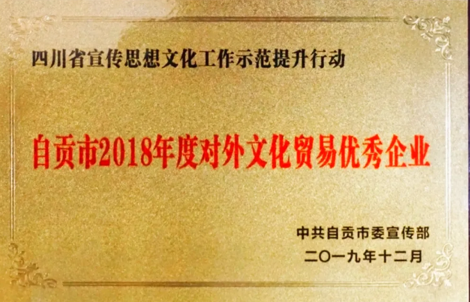 自貢燈貿(mào)集團(tuán)股份有限公司擁有30年彩燈文化行業(yè)史,以其卓著的境外展出業(yè)績(jī),榮獲中共自貢市委宣部頒發(fā)--四川省宣傳思想文化工作示范提升行動(dòng)“自貢市2018年度對(duì)外文化貿(mào)易優(yōu)秀企業(yè)”稱號(hào)。