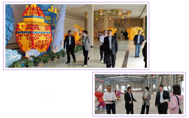 燈貿(mào)集團董事長劉婭、執(zhí)行總裁陶建軍陪同調(diào)研團一行參觀了東方彩燈(出口)基地,觀摩彩燈制作過程,全面了解了彩燈工藝流程。