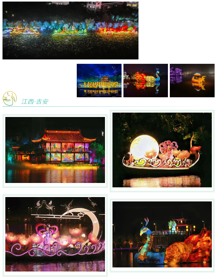 6月13日至15日,2022年江西省旅游產(chǎn)業(yè)發(fā)展大會(huì)在吉安市舉辦。自貢燈貿(mào)集團(tuán)匠心呈現(xiàn)的““后河 · 夢(mèng)回廬陵””彩燈藝術(shù)盛宴,在廬陵山水間華美鋪陳,流光溢彩。彩燈用“光”解構(gòu)時(shí)間,用“影”重塑空間,演繹廬陵厚重的文化、進(jìn)取的精神,開(kāi)放的胸懷,展現(xiàn)現(xiàn)代吉安奮力建設(shè)革命老區(qū)高質(zhì)量發(fā)展先行區(qū)、全省共富共享美好生活實(shí)踐區(qū)、全國(guó)紅色基因傳承示范區(qū)的豐碩成果。