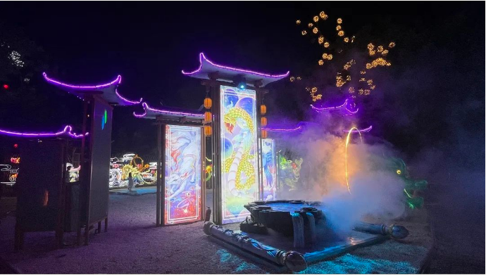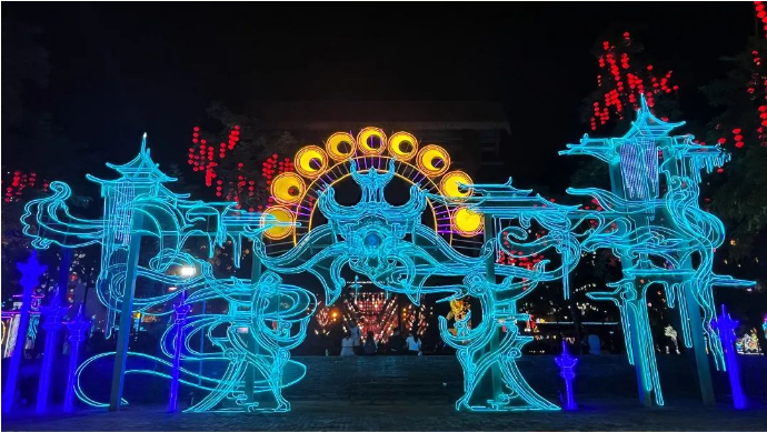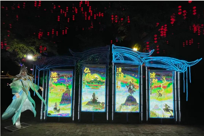本次燈展再掀“尋蹤仙文化之旅”風(fēng)潮。開(kāi)封萬(wàn)歲山·大宋武俠城內(nèi),游人如織,全新仙俠場(chǎng)景,為諸位仙友打造出沉浸式仙俠文化彩燈光影盛宴,通過(guò)瀟灑肆意的仙俠世界與傳統(tǒng)彩燈文化多維度結(jié)合的方式,以全新的模式詮釋中國(guó)傳統(tǒng)文化的璀璨魅力,解鎖江湖游玩的不同體驗(yàn)。